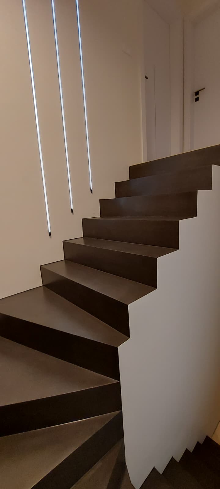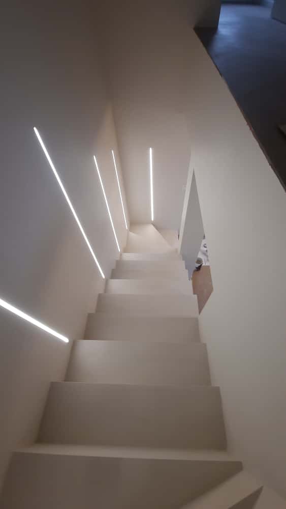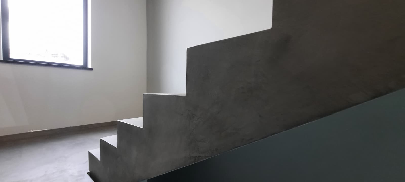 Schody z mikrocementu tworzą spójną całość z podłogą i ścianami. To rozwiązanie estetyczne, wytrzymałe i bezpieczne w codziennym użytkowaniu. Idealne do nowoczesnych i minimalistycznych wnętrz.